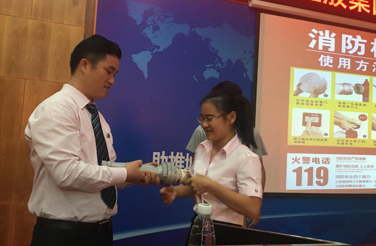 授课过程中,石经理首先对消防安全知识做了细致的讲解,着重介绍火灾的危害、学习消防知识的好处、单位消防安全“四个能力建设”以及灭火器材的使用方法等,使大家深刻认识到掌握消防知识技能的重要性。随后,石经理通过现场互动,将理论和实践相结合,让学员们上台具体演示了灭火器和消防栓的使用步骤,加深了学员们对消防自救器材的印象,以避免在火灾发生时造成更大的危害。最后,石经理通过现场答疑,一一解答了学员们日常工作生活中对消防知识的困惑。
