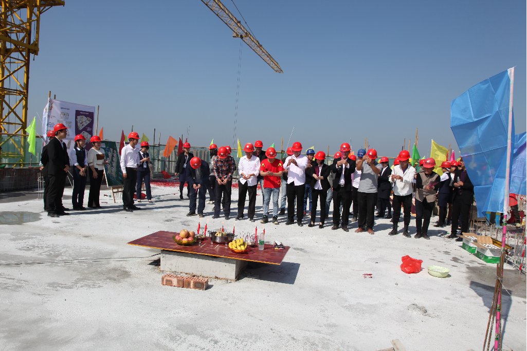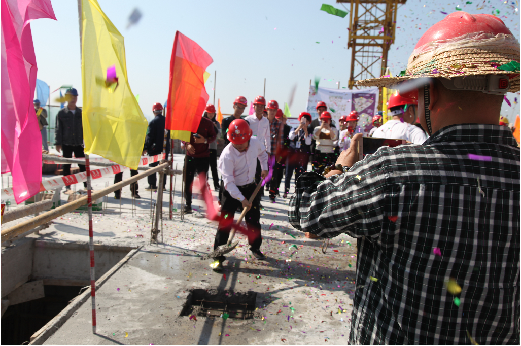 仪式上,项目经理翟坪清代表公司作了简要发言,他表示,项目的顺利封顶是全体同仁共同努力付出的结晶,这一刻,值得我们共同庆贺,同时他也表示,项目存在的各种问题亦不能忽视,希望我们一线建设者们继续发扬真抓实干作风,各协作部门进一步严把质量关,加强安全管理,加快施工进度,为我们的销售早日实现清盘、为我们的回款创造一切有利条件,为集团的明日更加辉煌添砖加瓦!
