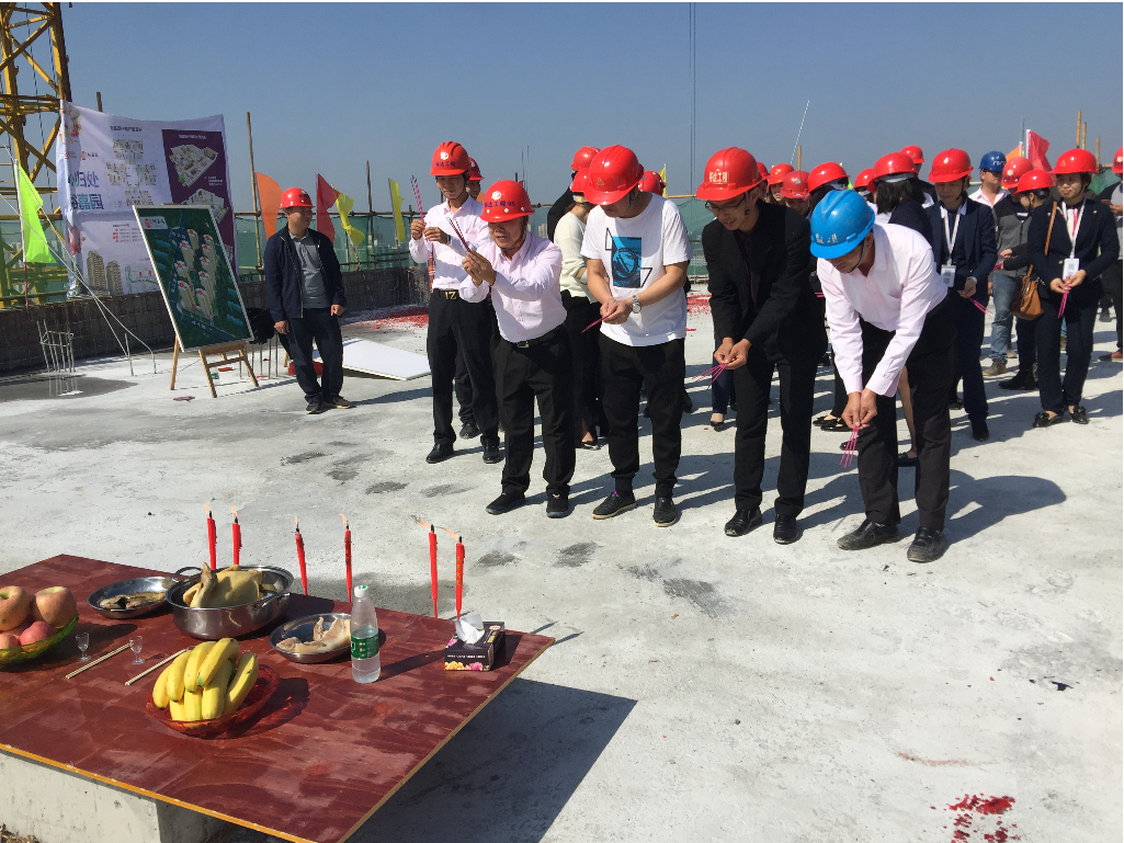 裕嘉园项目7#楼于10月29日上午10:38顺利举行喜封金顶仪式。集团董事兼副总裁覃其成、总裁助理杨贻敏、周建红班组及地产一公司、营销一组各成员等出席仪式。