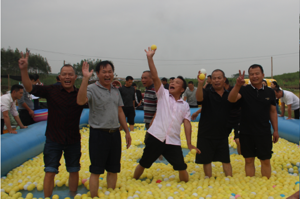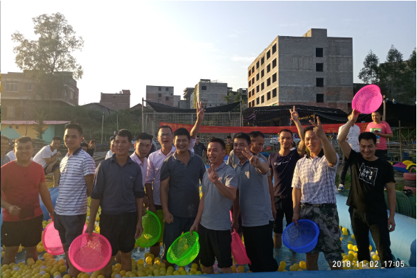 压轴的是《徒手抓鱼》游戏,真切的体现了“民间有高手”。每场40条鱼,20人下鱼池抓鱼。有些伙伴徒手十几分钟内抓获十多条鱼。有些伙伴则全身湿透也没抓着一条鱼。但是大家无比开心,很多伙伴都主动把战利品分享给没抓到鱼的同事,体现了同事间的友爱。