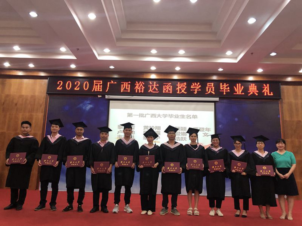7月31日下午15:00,裕达函授班2020届函授学员毕业典礼在来宾裕达集团7楼大会议室举行。裕达集团行政人力总监陈妍妮、裕达集团人力资源部经理曾雪菊、广西人才市场学习中心部长助理黄淑文、教学主管姚再任老师、毛璐璐老师以及30余名毕业学员代表共同出席了此次毕业典礼仪式。