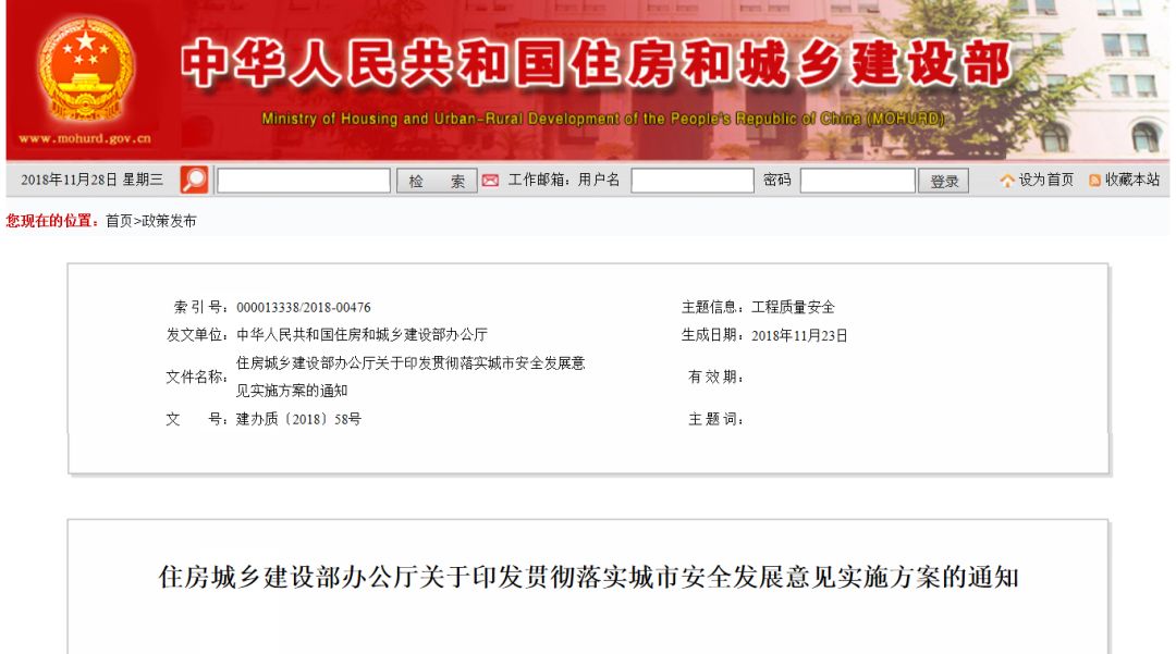 住房城乡建设部出台实施方案,全面提高城市安全保障水平