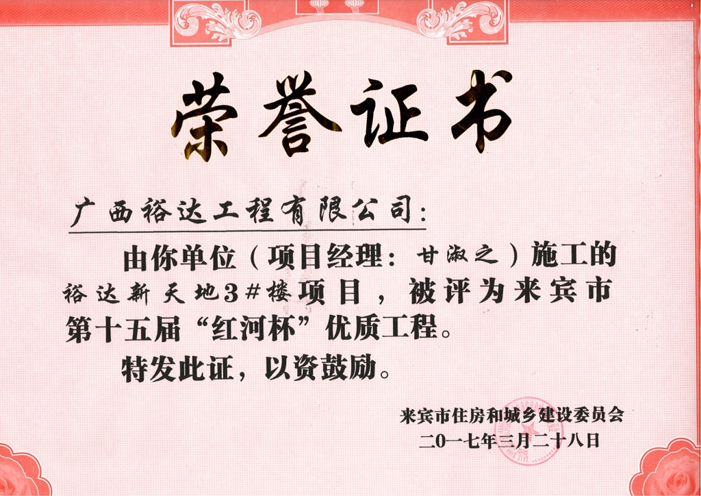 2017年来宾市第十五届“红河杯”优质工程