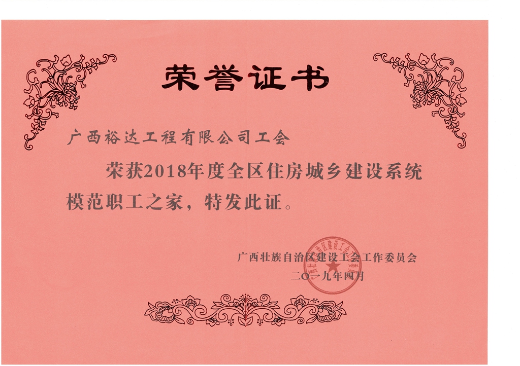 荣获2018年度全区住房城乡建设系统模范职工之家